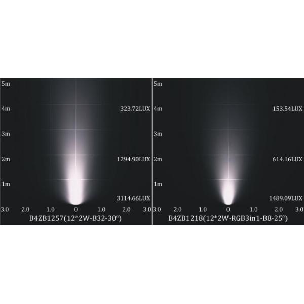 | B4ZB1218 | 12×2W 3-in-1 RGB Full Color | B8 | 25 | 24VDC | R=400 G=500 B=500 | 33.6 | 726 | 08 |